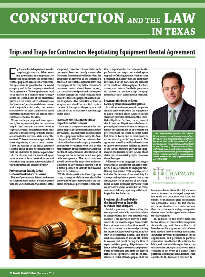 Equipment Rental Agreements can be surprisingly onerous. When renting equipment, it is important to read and negotiate the terms of the rental equipment agreement.